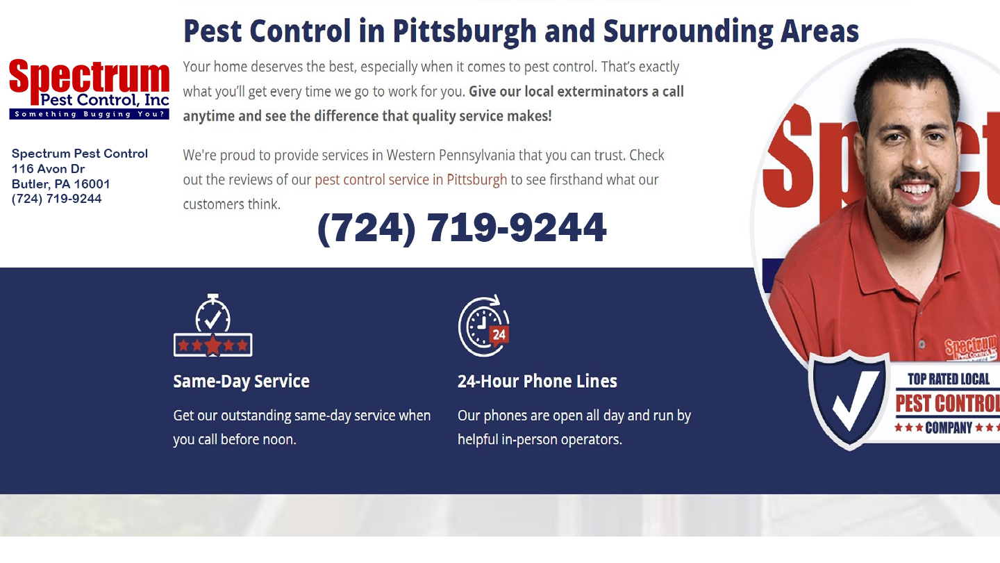 At Spectrum Pest Control, our foremost principle revolves around tailoring our services to match your unique lifestyle while safeguarding your individual property. We understand that pest control in Butler is a crucial aspect of maintaining a comfortable and hygienic living environment, and our dedicated team of experts is here to provide you with the utmost flexibility and protection. With years of experience in the industry, we have honed our methods to offer comprehensive pest management solutions that adapt seamlessly to your specific needs. Our professional technicians possess the knowledge and expertise to tackle a wide range of pest issues, ensuring that no matter the pest invaders you face, we have the perfect solution. At Spectrum Pest Control, we pride ourselves on employing innovative techniques and utilizing cutting-edge technology to effectively eliminate pests while minimizing disruptions to your daily routine. From discreet treatments to eco-friendly alternatives, we go above and beyond to provide sustainable pest control solutions that prioritize the well-being of your family and the environment. Business Email: contact@goodbyebug.com